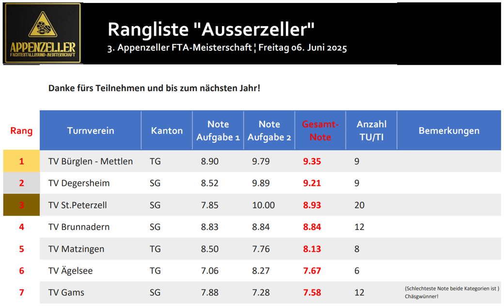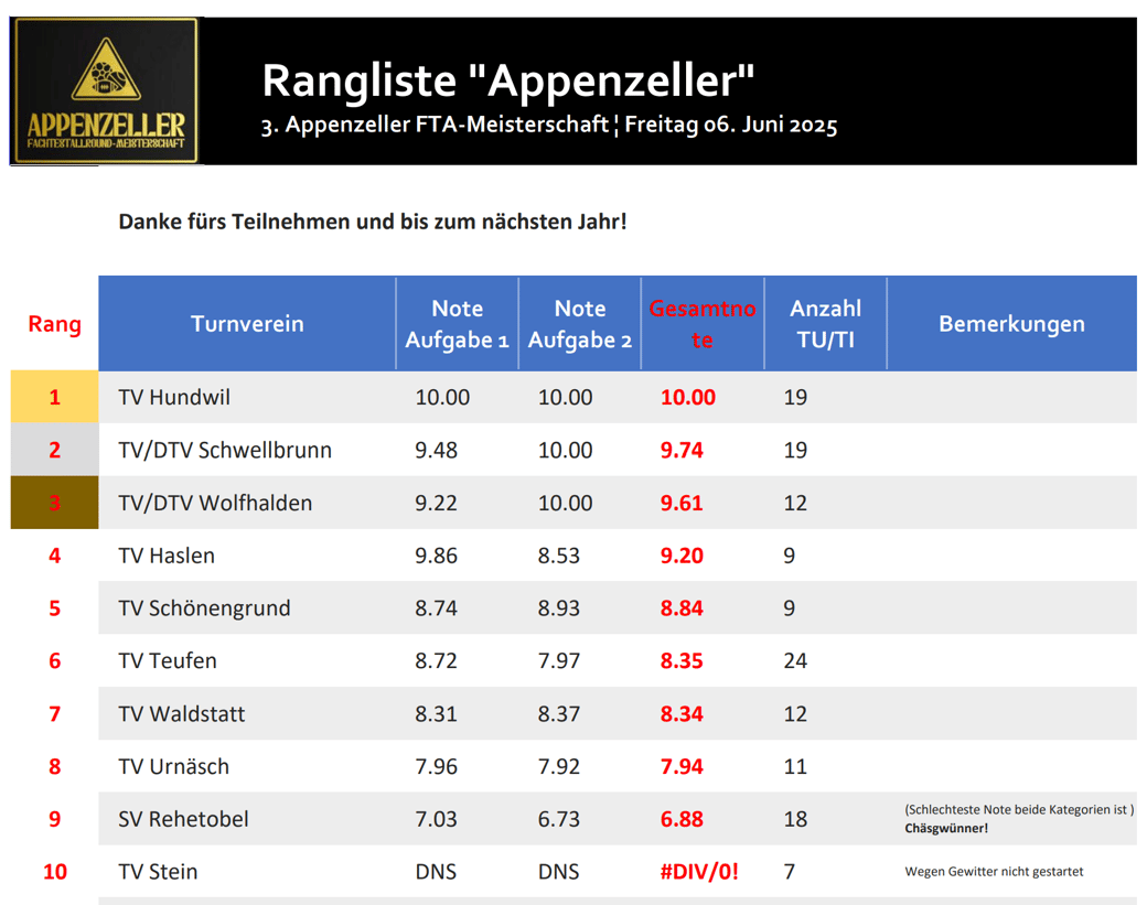 HERZLICHE GRATULATION den beiden Siegern TV Hundwil und TV Bürglen-Mettlen! Untenstehend findet Ihr die Ranglisten und die Bildergalerie!